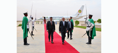 واستقبل فخامة رئيس الجمهورية بمطار نواكشوط الدولي “أم التونسي” من طرف معالي الوزير الأول، السيد المختار ولد أجاي، والوزير المستشار برئاسة الجمهورية، السيد محمد ولد عبد الله ولد عثمان، ووزير العدل، السيد محمد محمود ولد الشيخ عبد الله بن بيه، ووزير الدفاع وشؤون المتقاعدين وأولاد الشهداء، السيد حنن ولد سيدي، ووزير الداخلية وترقية اللامركزية والتنمية المحلية، السيد محمد أحمد ولد محمد الأمين، والمديرة المساعدة لديوان رئيس الجمهورية، السيدة غانديغا فاتيماتا، ووالي نواكشوط الغربية، السيد امربيه ربو ولد بونن ولد عابدين، ورئيسة جهة نواكشوط السيدة فاطمة بنت عبد المالك.