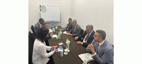 عقد معالي وزير الاقتصاد والمالية، السيد سيد أحمد ولد أبوه، ومعالي وزير الصيد والبنى التحتية البحرية والمينائية، السيد الفضيل ولد سيداتي ولد أحمد لولي، اليوم الجمعة في مدينة يوكوهاما اليابانية، مباحثات مع السيد يوكو ياسوناغا، نائب المدير العام لوكالة الأمم المتحدة للتنمية الصناعية محاطا بعدد من معاونيه.