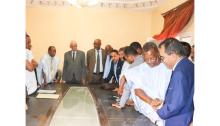 أشرف المكلف بمهمة بوزارة التجهيز والنقل السيد محمد لمين ولد الشيخ عبد الله، رفقة المستشار القانوني لوزيرة الوظيفة العمومية والعمل السيد خالد ولد الشيخ، اليوم الخميس على توقيع اتفاقية بين وزارة التجهيز والنقل ووزارة ال