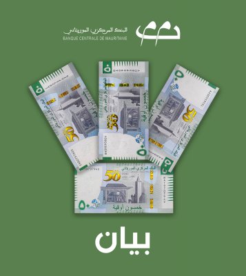 يرفع البنك المركزي الموريتاني إلى علم كافة المواطنين أن الورقة النقدية من فئة 50 أوقية التي تم إصدارها مؤخرا توفرت بثلاثة أصناف و ذلك في إطار الاختبار لمعرفة أيهم أكثر مناعة وملائمة لمناخ البلد و سلوك مستخدمي النقود