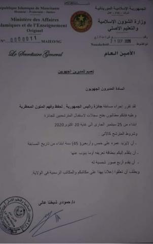وكان مجلس الوزارء قد صادق مؤخراً على مقترح قدمه وزير الشؤون الاسلامية الداه ولد اعمر طالب يقضي بإنشاء جائزة باسم رئيس الجمهورية لفهم وحفظ المتون المحظرية، وتحديد مبلغ 5 ملايين للفائز الأول بها.