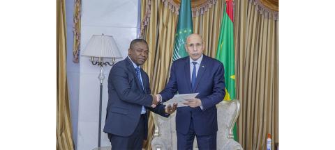 استقبل فخامة رئيس الجمهورية، رئيس الاتحاد الافريقي، السيد محمد ولد الشيخ الغزواني، مساء اليوم الخميس بالقصر الرئاسي في نواكشوط، وفدا حكوميا من الغابون، برئاسة معالي وزير النقل والبحرية التجارية، السيد دييدوني لويك اندينغا مودوما، مبعوثا خاصا من الرئيس الغابوني.