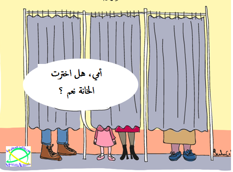 3. عليه أن ينتبه حينما يكون خلف الستار إلى الخانة المعبرة عن الإختيار الجيد وهي خانة "نعم".. وليقم بالتأشير عليها قبل أن يجعل ورقة التصويت في الظرف.