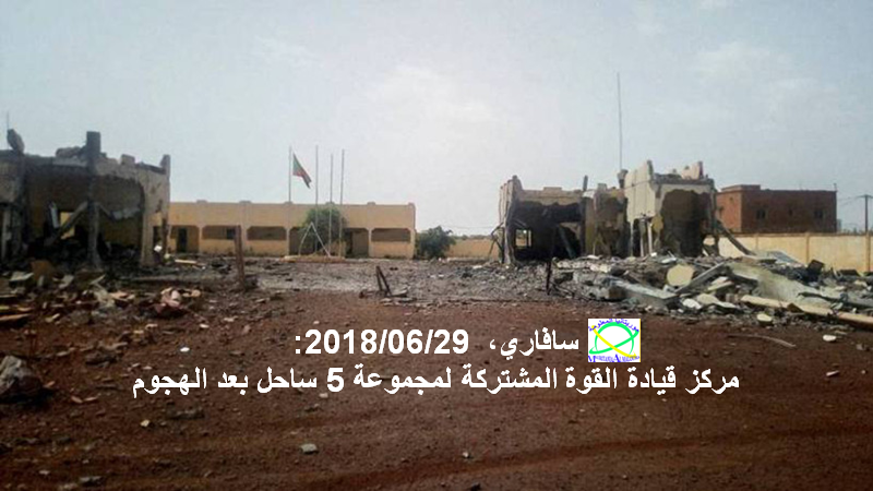 وقع ظهر اليوم هجوم مسلح على المركز العام لقيادة "القوة العسكرية المشتركة لمجموعة 5 ساحل" الموجود في مدينة سافاري الواقعة في وسط جمهورية مالي.. وتتحدث الأنباء الأولية عن سقوط ستة قتلى وعن جرحى.