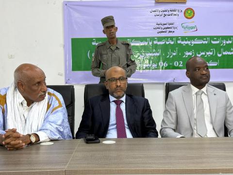 أشرف الأمين العام لوزارة الثقافة والفنون والاتصال والعلاقات مع البرلمان السيد سيدي محمد جدو خطري صحبة المديرة العامة للتلفزة الموريتانية السيدة السنيه سيدي هيبه صباح اليوم بمدينة اكجوجت على انطلاق أول دورة تكوينية تنظم لصالح المكاتب الجهوية كبداية لسلسلة دورات لاحقة ستطال جميع مكاتب الموريتانية في الداخل.