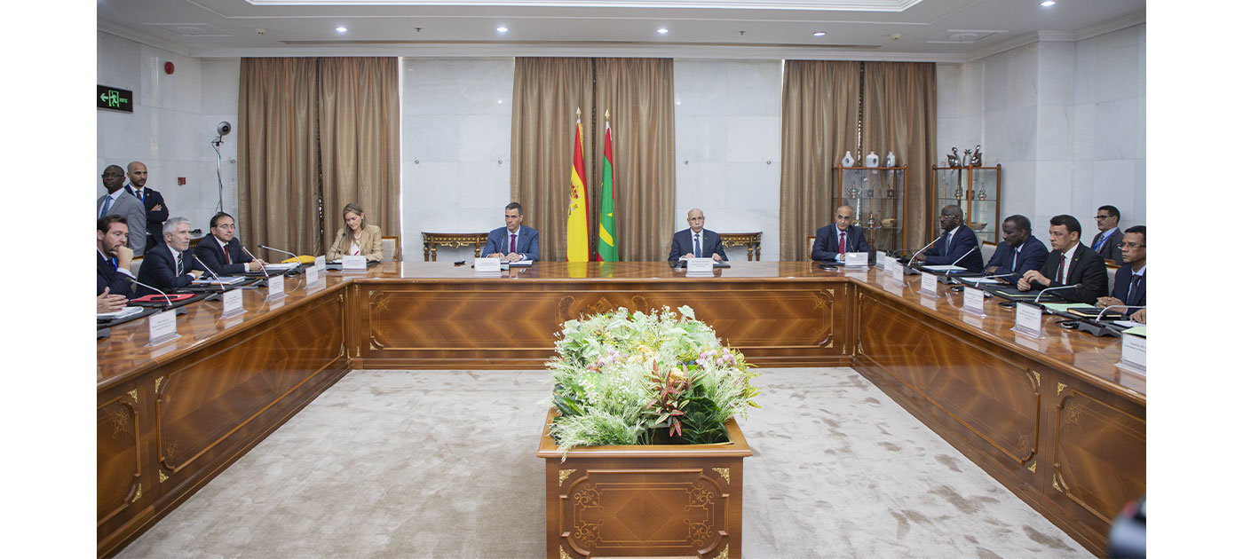 عقد فخامة رئيس الجمهورية، السيد محمد ولد الشيخ الغزواني، اليوم الأربعاء في القصر الرئاسي بنواكشوط، جلسة مباحثات مع رئيس الحكومة الإسبانية، معالي السيد بيدرو سانشيز، بحضور أعضاء الوفدين المرافقين.