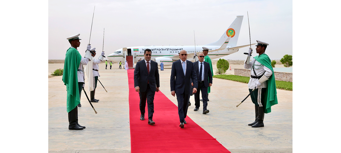 واستقبل فخامة رئيس الجمهورية بمطار نواكشوط الدولي “أم التونسي” من طرف معالي الوزير الأول، السيد المختار ولد أجاي، والوزير المستشار برئاسة الجمهورية، السيد محمد ولد عبد الله ولد عثمان، ووزير العدل، السيد محمد محمود ولد الشيخ عبد الله بن بيه، ووزير الدفاع وشؤون المتقاعدين وأولاد الشهداء، السيد حنن ولد سيدي، ووزير الداخلية وترقية اللامركزية والتنمية المحلية، السيد محمد أحمد ولد محمد الأمين، والمديرة المساعدة لديوان رئيس الجمهورية، السيدة غانديغا فاتيماتا، ووالي نواكشوط الغربية، السيد امربيه ربو ولد بونن ولد عابدين، ورئيسة جهة نواكشوط السيدة فاطمة بنت عبد المالك.