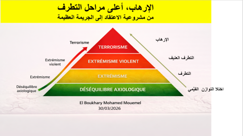 بهذا المعنى، لا يمكن النظر إلى الفعل الإرهابي بوصفه حدثًا مفاجئًا، بل كحصيلة مسار تدريجي يبدأ باختلال في التوازن القيمي، ويمرّ عبر الانغلاق الفكري، قبل أن ينتهي إلى العنف الإجرامي المنظم.